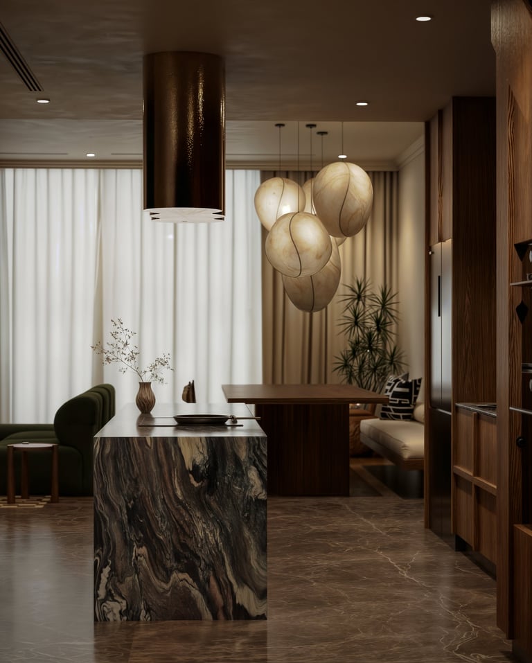 This project is a study in elemental harmony, where modern minimalism meets the subtle richness of natural materials. Sculpted forms and a restrained palette create a serene environment, a sanctuary from the complexities of the outside world.Light plays a pivotal role, illuminating textures and revealing the inherent beauty of stone, wood, and refined surfaces. Spaces are designed to flow seamlessly, each element contributing to a cohesive narrative of understated luxury