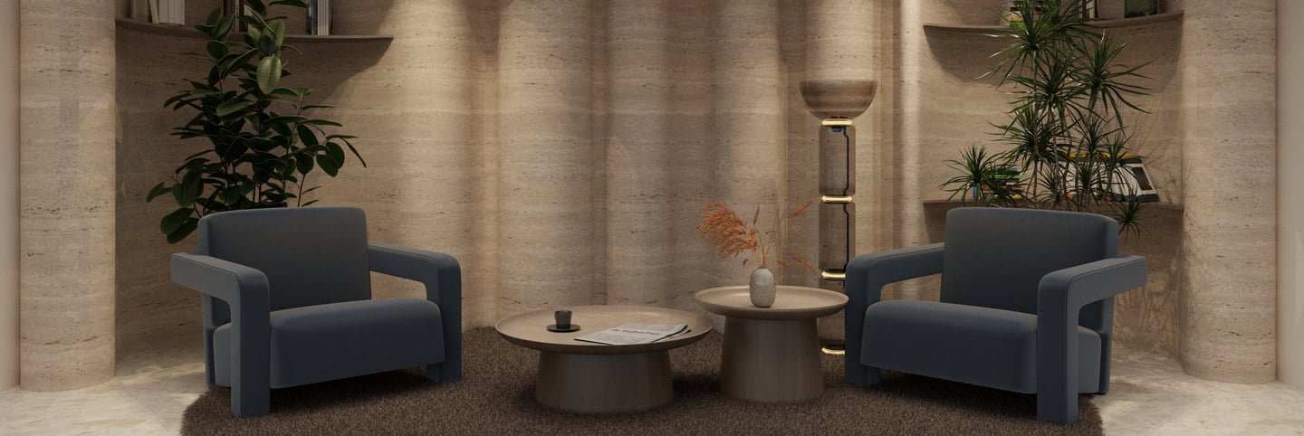 The design emphasizes a sense of progression, moving from the dramatic, high-ceilinged entrance with its sculptural centerpiece to the intimate seating areas defined by layered textures and warm hues. The interplay of vertical and horizontal elements creates a dynamic visual language. Note the striking pendant lights that draw the gaze upwards, contrasting with the grounding presence of the textured floors and organic forms. The use of mirrored surfaces expands the perception of space, while strategically placed greenery softens the architectural lines.