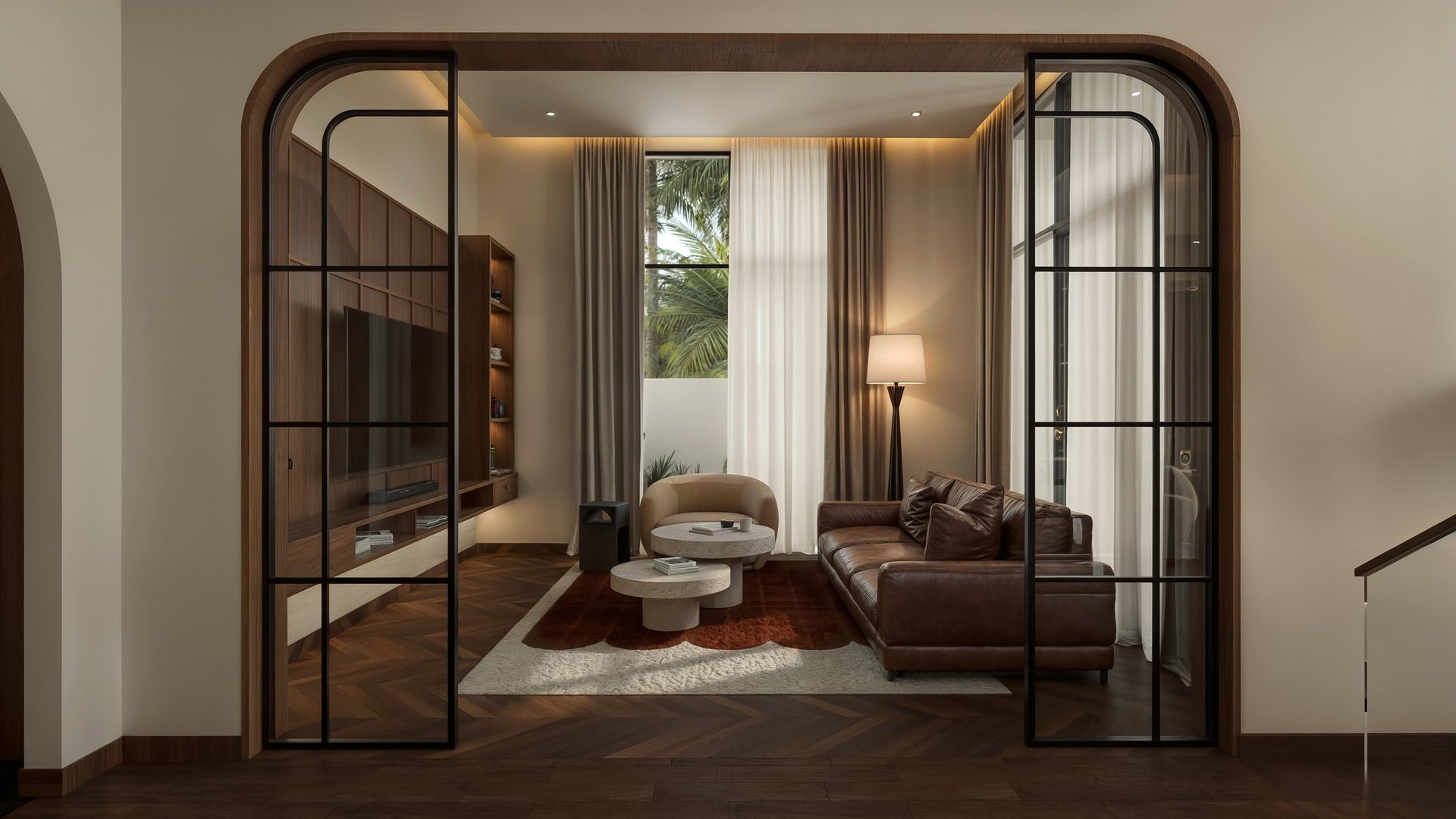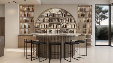 An exploration of form and atmosphere, this space is defined by the quiet rhythm of light and shadow. Thoughtfully composed elements, rich textures, and a considered interplay of materials create depth without excess. Every detail is placed with precision, allowing the design to speak in measured tones. The result is a setting that unfolds gradually, revealing moments of warmth and refinement in its quiet composition.