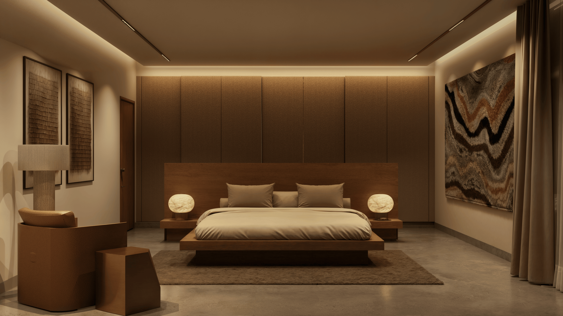 A sanctuary of refined elegance. This project elevates modern minimalism with a curated selection of rich, natural materials. Sculpted forms and a subdued chromatic scheme create an atmosphere of serene sophistication. The interplay of light and texture is meticulously orchestrated, resulting in spaces of enduring beauty and tranquil opulence.