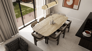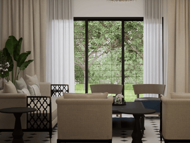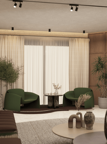 Our design philosophy revolves around creating interiors that act as a canvas, seamlessly connecting with the external environment. Crafting the space as a stage, inviting natural light, serene views, and the ambience of the outdoors to participate and infuse the interiors with its essence.