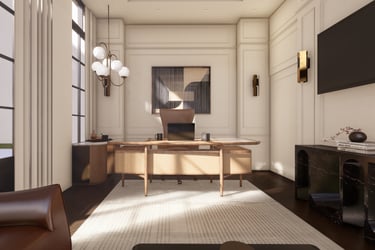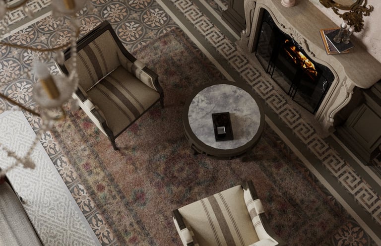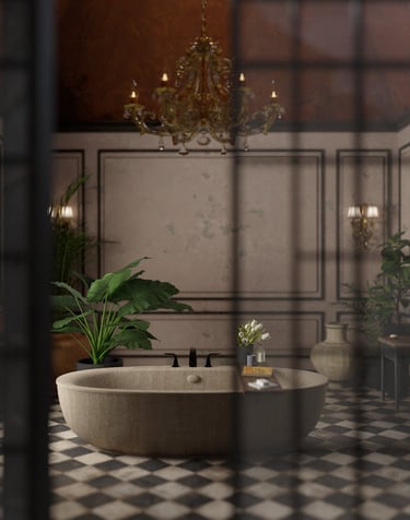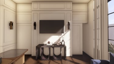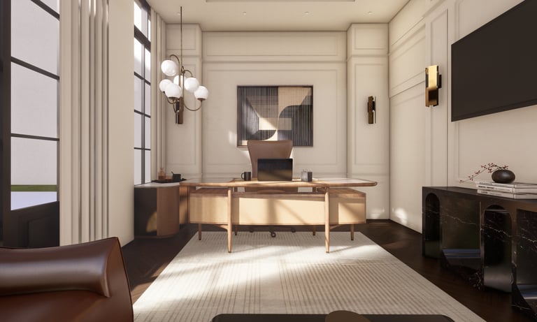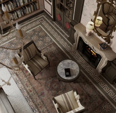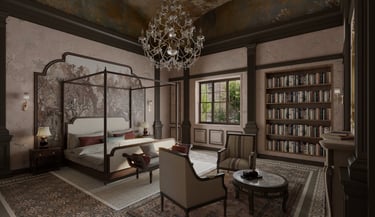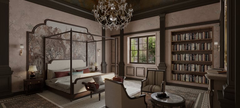 This project is a study in storytelling through design. It first leads you into a realm of reimagined old-world charm, where a soft blush palette and rich leather create an atmosphere of cultivated comfort and layered history.