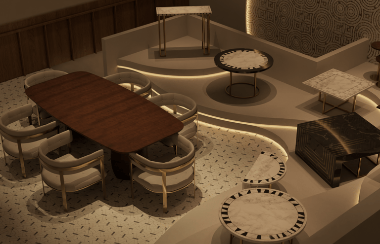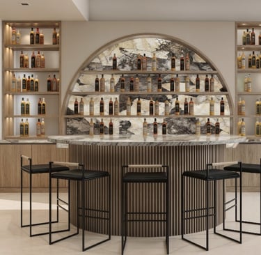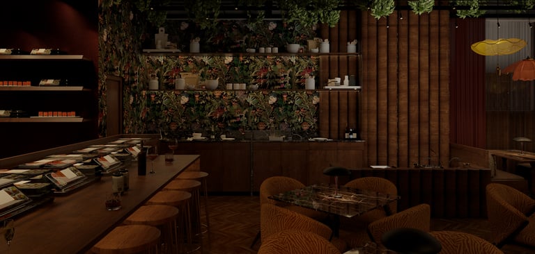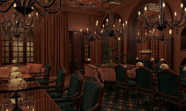 This project blurs the line between dining and performance, conceived as a stage for both gathering and spectacle. Deep tones, gilded accents, and layered textures create a setting of theatrical richness, where every corner carries its own mood. Arched thresholds, painted ceilings, and sculptural lighting orchestrate a sense of grandeur without losing intimacy. The result is an F&B environment that transcends utility: an immersive experience of drama, dialogue, and refined indulgence.