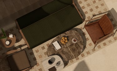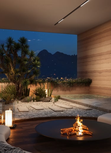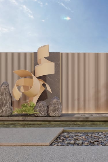 The design concept harmoniously weaves together organic textures, inviting elements like gentle light, soothing water features, and vibrant foliage. Through the interplay of tactile surfaces and nature's elements, we craft a sanctuary that captures the serenity of being outside while nestled within.