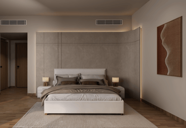 The project embodies an oasis of calm, intertwining neutral tones with the soothing textures of natural materials. Through meticulous use of serene hues and organic materiality, we curate spaces that evoke a sense of harmony and relaxation.