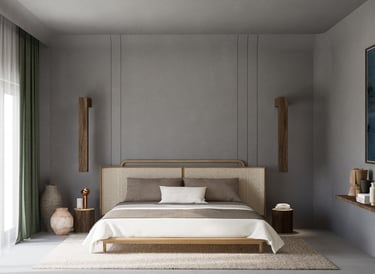 Each element, from the gentle hues to the tactile surfaces, harmonizes to create a sanctuary—where the interplay of natural materials brings a serene balance to every corner.