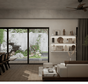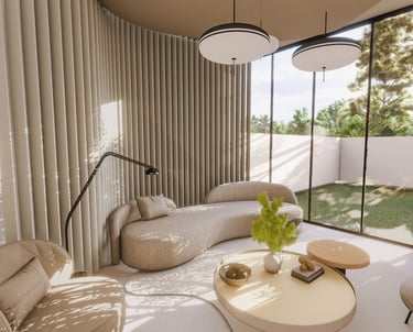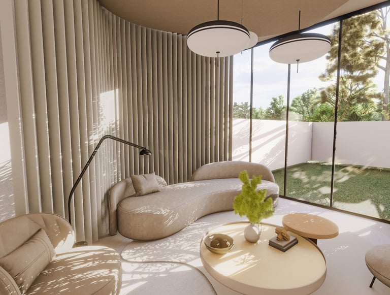 A tranquil space that speaks volumes through simplicity. This design creates an open connection with nature, offering a serene ambiance with thoughtful, minimal interventions. Clean lines and open layouts invite natural light and calming views, promoting a sense of comfort and well-being