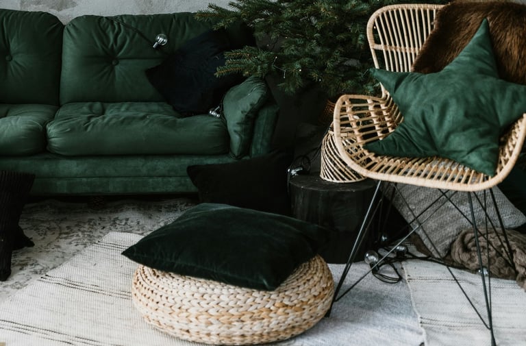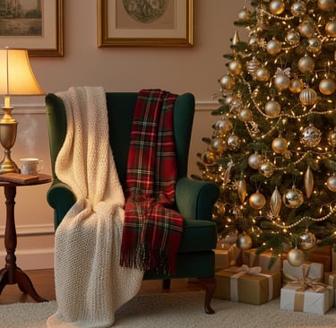 Winter and holidays are the perfect excuse to lean into warmth. Think beyond simple cushions or throws: layering rich, tactile materials like wool, velvet, faux fur, and chunky knits can instantly transform a living space into a cozy winter retreat. Soft throws over sofas or armchairs, plush pillows in seasonal colors, and even textured rugs can add depth and comfort. These textiles don’t only keep you warm, they evoke a sense of comfort and calm that carries from everyday winter nights into festive gatherings.