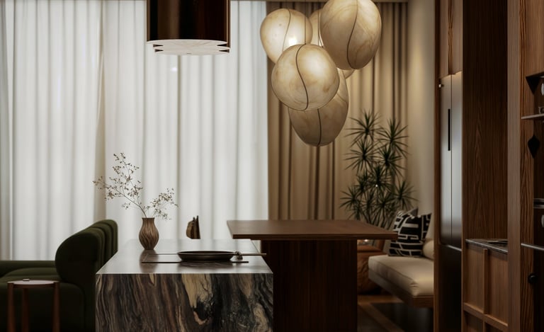This project is a study in elemental harmony, where modern minimalism meets the subtle richness of natural materials. Sculpted forms and a restrained palette create a serene environment, a sanctuary from the complexities of the outside world.Light plays a pivotal role, illuminating textures and revealing the inherent beauty of stone, wood, and refined surfaces. Spaces are designed to flow seamlessly, each element contributing to a cohesive narrative of understated luxury