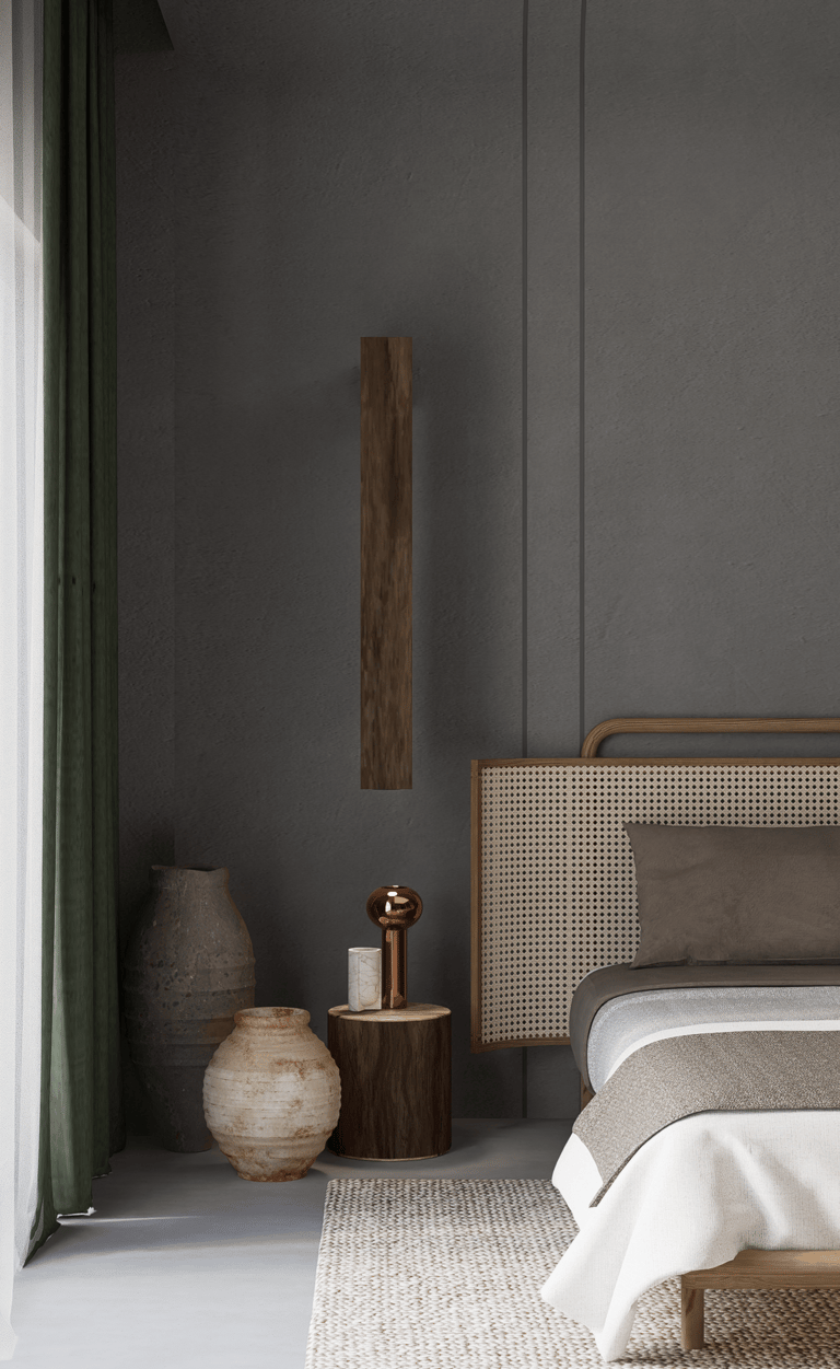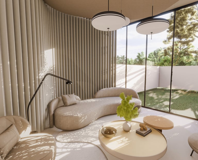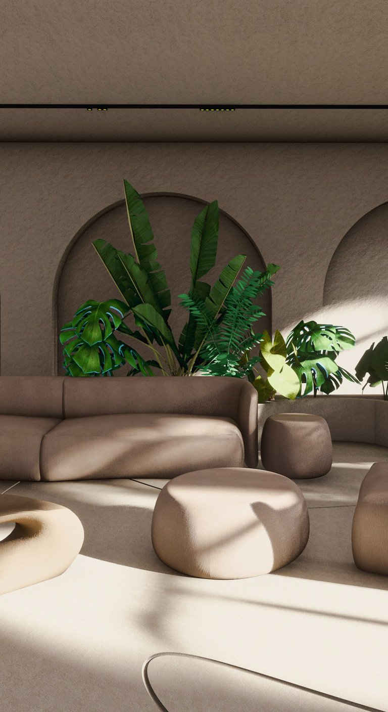 The design concept harmoniously weaves together organic textures, inviting elements like gentle light, soothing water features, and vibrant foliage. Through the interplay of tactile surfaces and nature's elements, we craft a sanctuary that captures the serenity of being outside while nestled within.