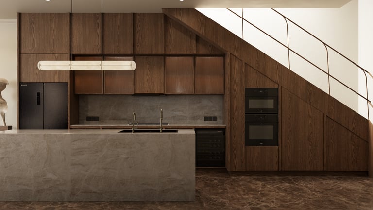 This townhouse is shaped by a quiet elegance that embraces both cohesion and individuality. A palette of warm woods, soft neutrals, and sculpted lighting creates an atmosphere of ease, where every room feels both refined and inviting.