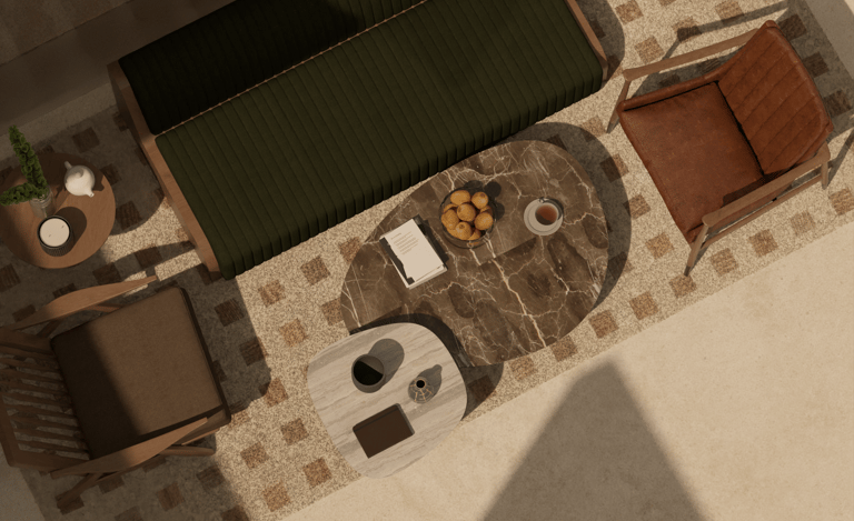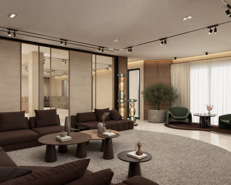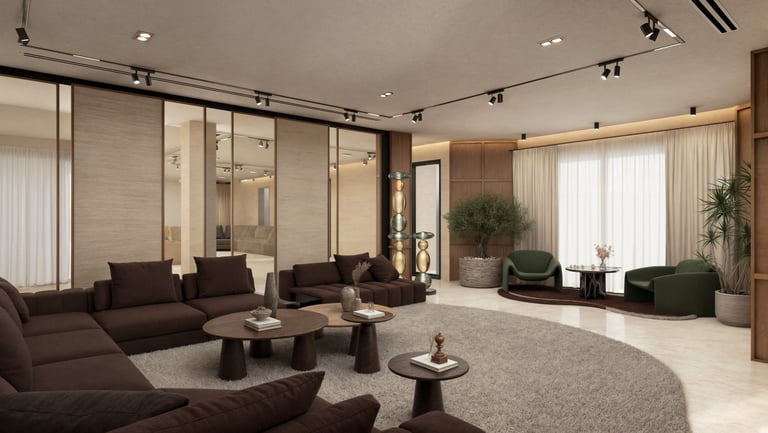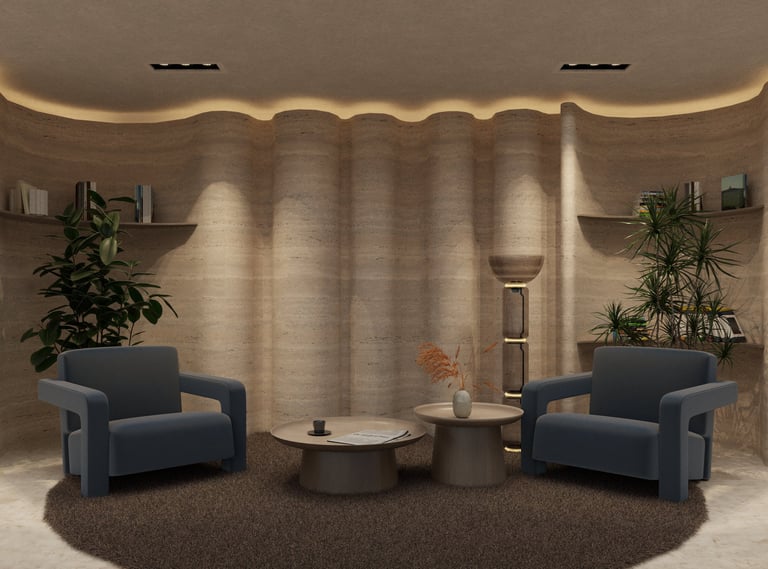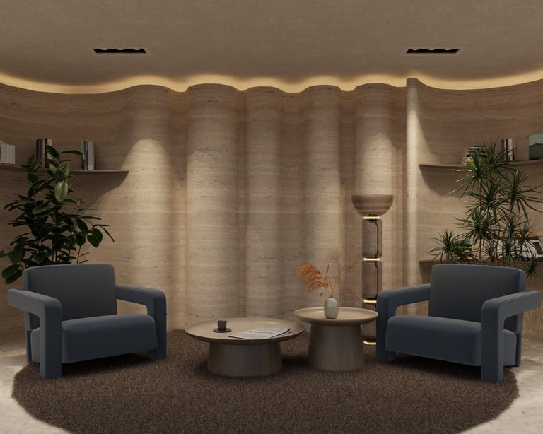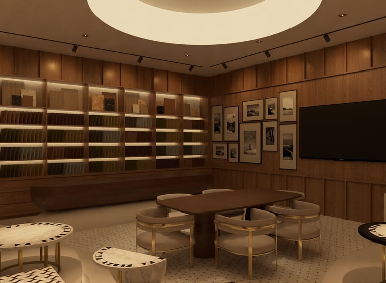 Conceived as a spatial archive, this showroom presents materiality as a living narrative. Surfaces, textures, and patterns unfold in carefully orchestrated layers, guiding the visitor through a journey of tactile discovery. Curved pathways, sculpted platforms, and warm tonalities create rhythm and continuity, while intimate zones encourage pause and reflection. The result is a retail environment that transcends function; an atmosphere of exploration, dialogue, and refined presence.