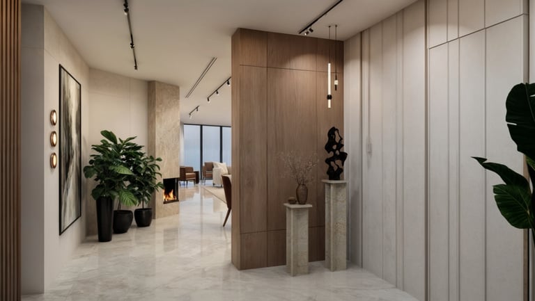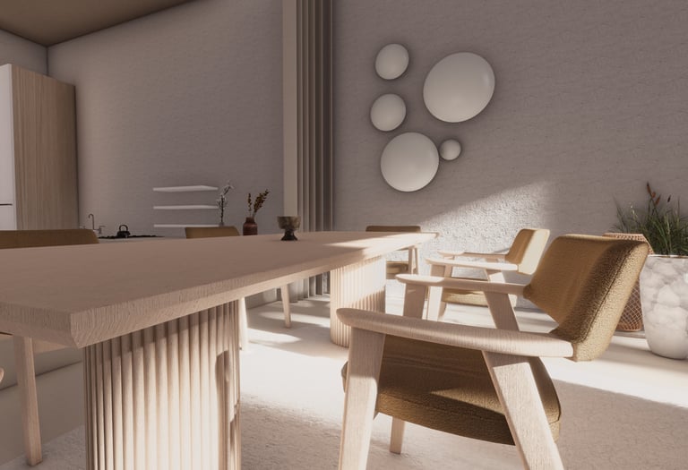 A dynamic exploration of form and volume. This project emphasizes a sense of progression through carefully composed spaces. The interplay of vertical and horizontal elements creates a captivating visual journey, enriched by layered textures and a warm, inviting palette.