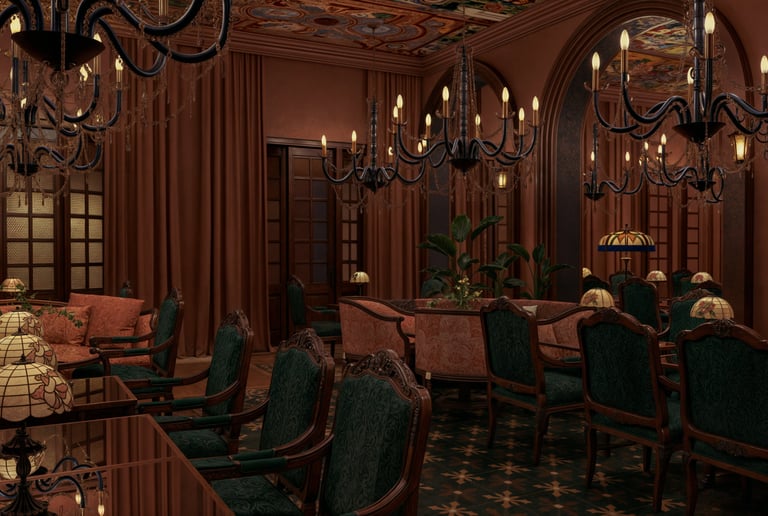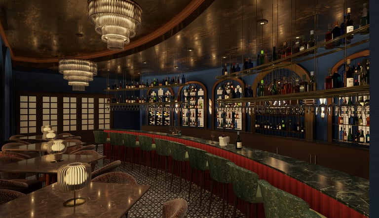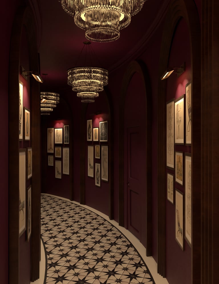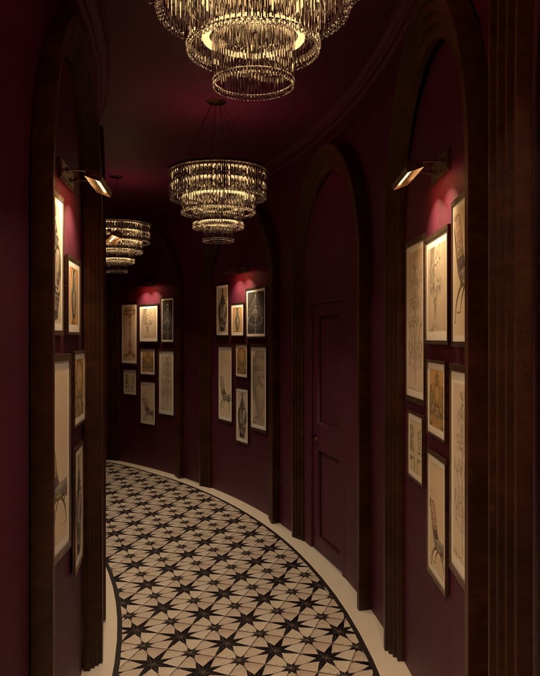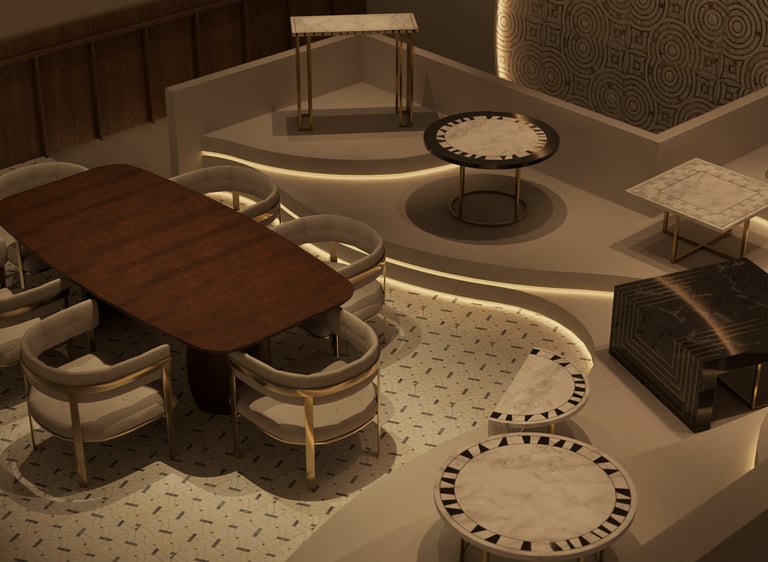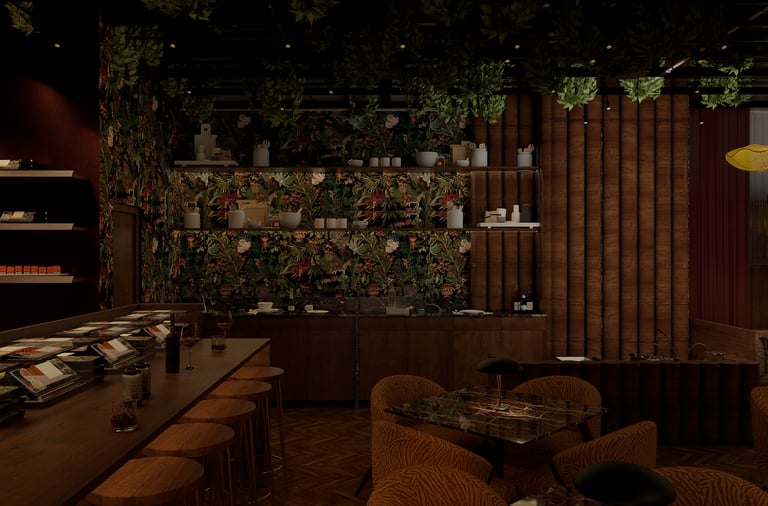 This project blurs the line between dining and performance, conceived as a stage for both gathering and spectacle. Deep tones, gilded accents, and layered textures create a setting of theatrical richness, where every corner carries its own mood. Arched thresholds, painted ceilings, and sculptural lighting orchestrate a sense of grandeur without losing intimacy. The result is an F&B environment that transcends utility: an immersive experience of drama, dialogue, and refined indulgence.