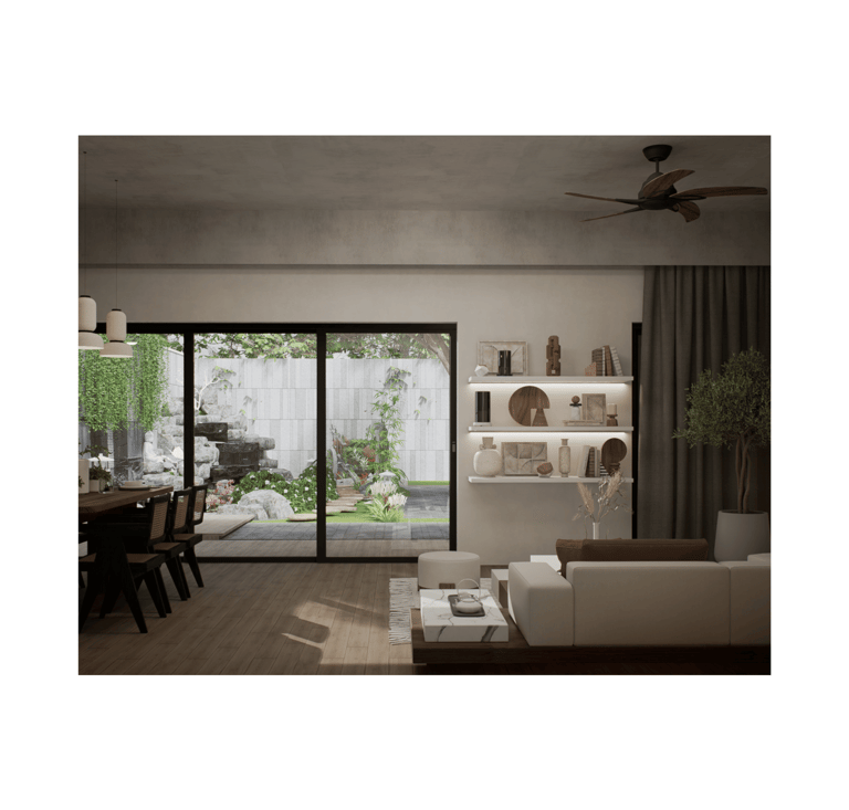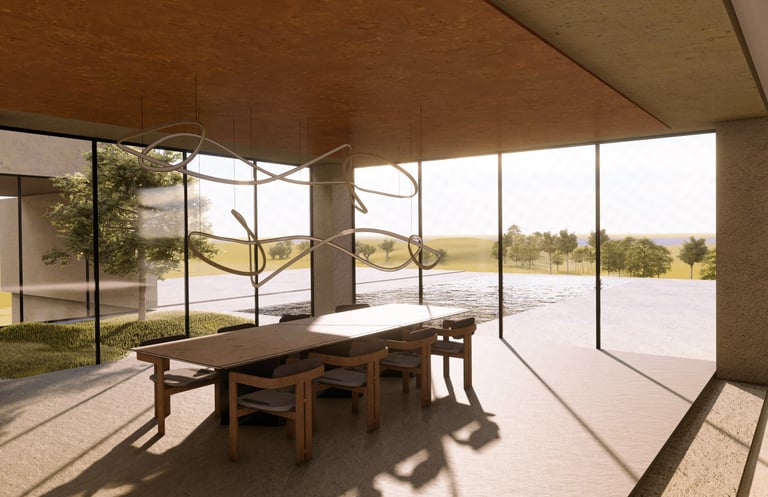A tranquil space that speaks volumes through simplicity. This design creates an open connection with nature, offering a serene ambiance with thoughtful, minimal interventions. Clean lines and open layouts invite natural light and calming views, promoting a sense of comfort and well-being