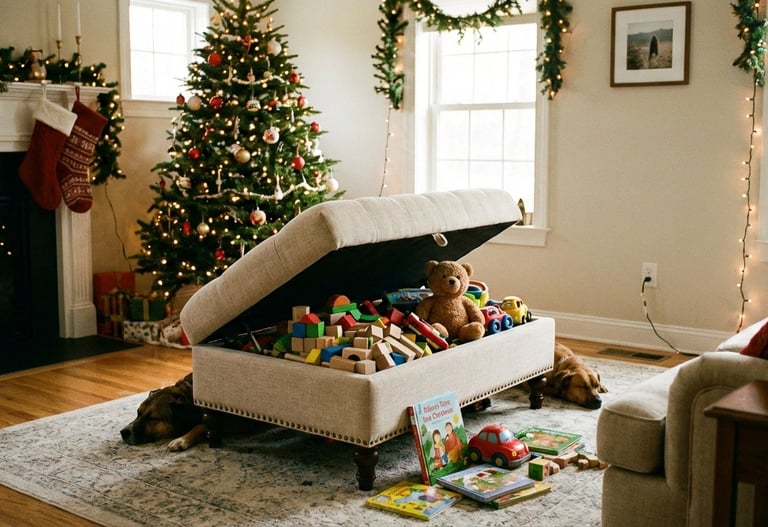 Ottomans with internal compartments for toys, crafts, and games