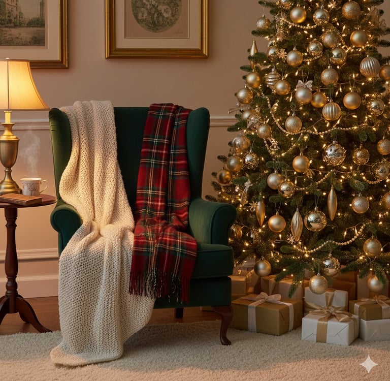 Winter and holidays are the perfect excuse to lean into warmth. Think beyond simple cushions or throws: layering rich, tactile materials like wool, velvet, faux fur, and chunky knits can instantly transform a living space into a cozy winter retreat. Soft throws over sofas or armchairs, plush pillows in seasonal colors, and even textured rugs can add depth and comfort. These textiles don’t only keep you warm, they evoke a sense of comfort and calm that carries from everyday winter nights into festive gatherings.
